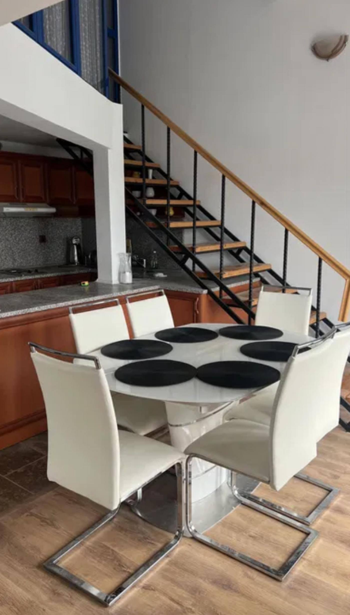Квартира расположена на 6 этаже шестиэтажного здания и представляет собой двухуровневый апартамент с просторной террасой.
