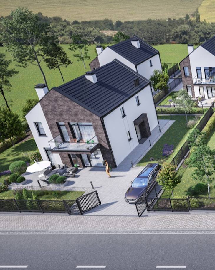 Дом двухэтажный с общей площадью от 128 кв.м., что позволяет удобно разместить семью и организовать полноценные жилые зоны.
