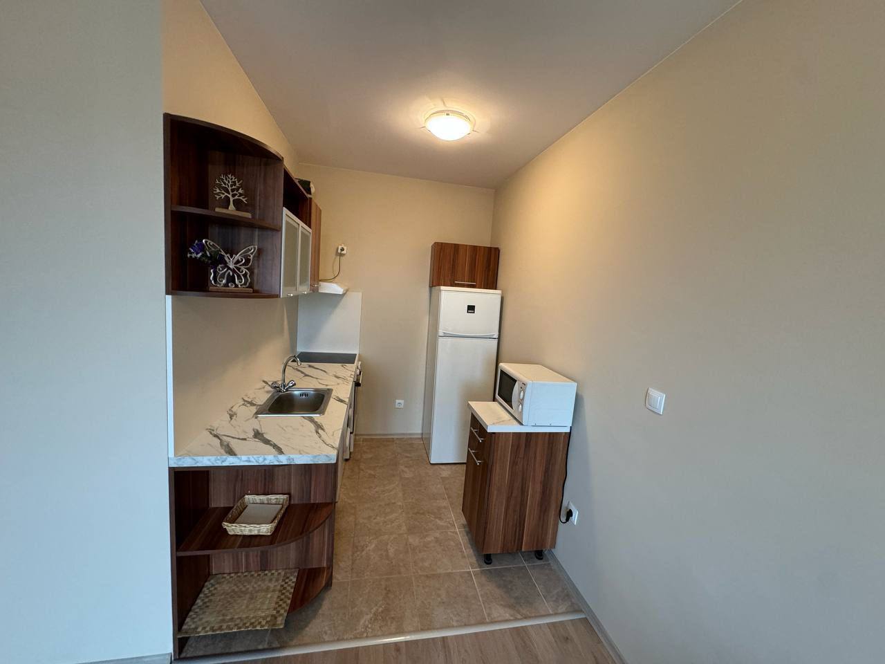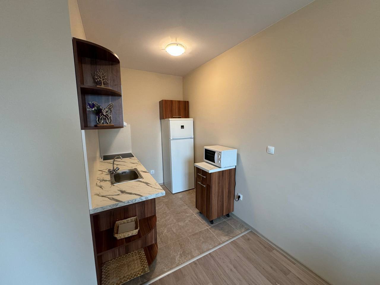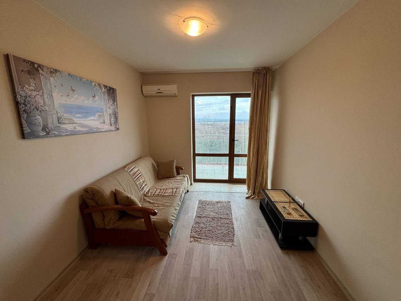 Квартира находится на втором этаже и имеет общую площадь 58 квадратных метров. Планировка включает просторную гостиную с кухонной зоной, отдельную спальню, ванную комнату и балкон. Такой формат квартиры в Солнечном Береге универсален и подходит как для постоянного проживания, так и для сдачи в аренду. Благодаря удобному расположению и функциональной планировке, жильё обеспечивает комфорт и практичность.