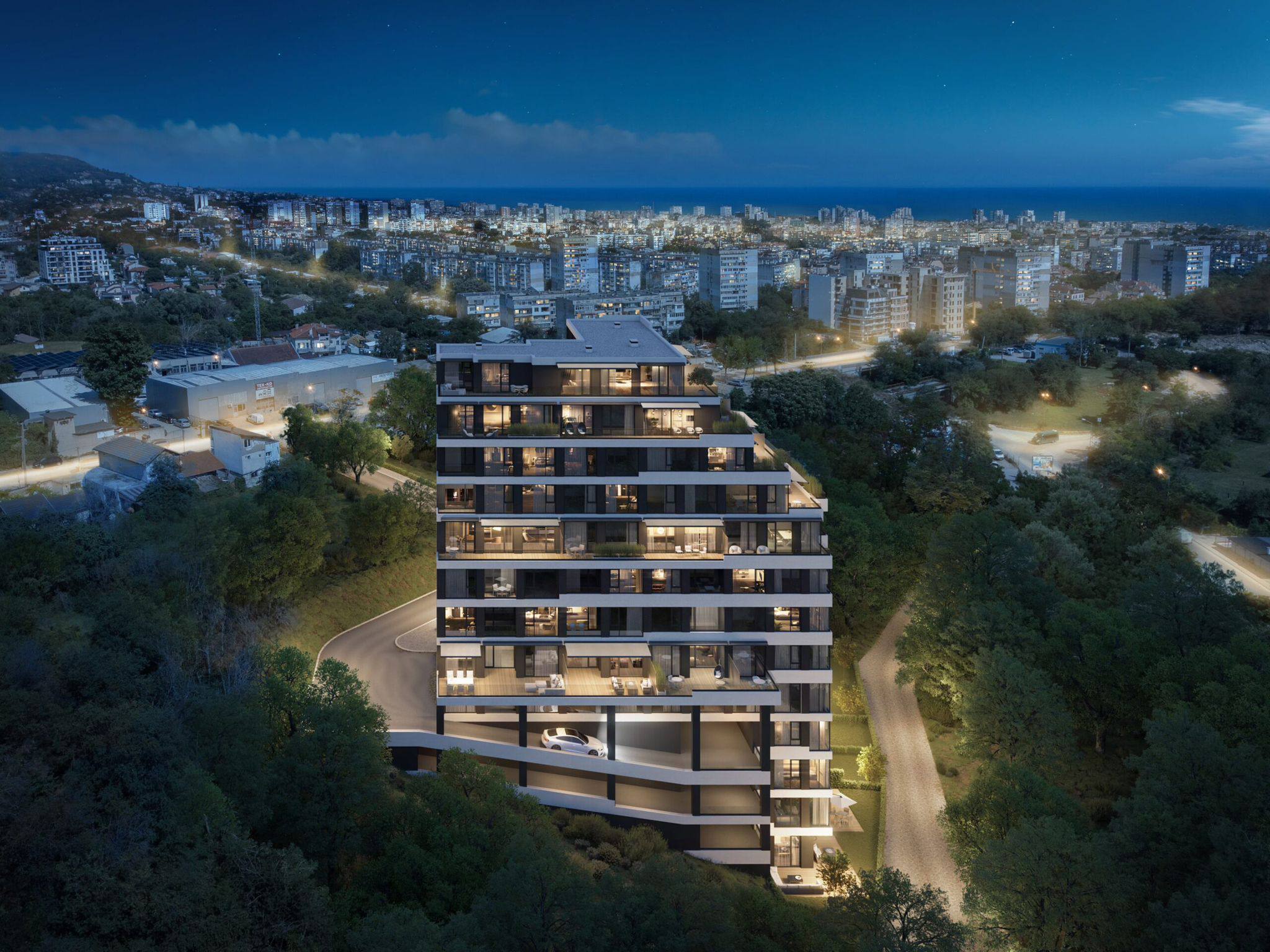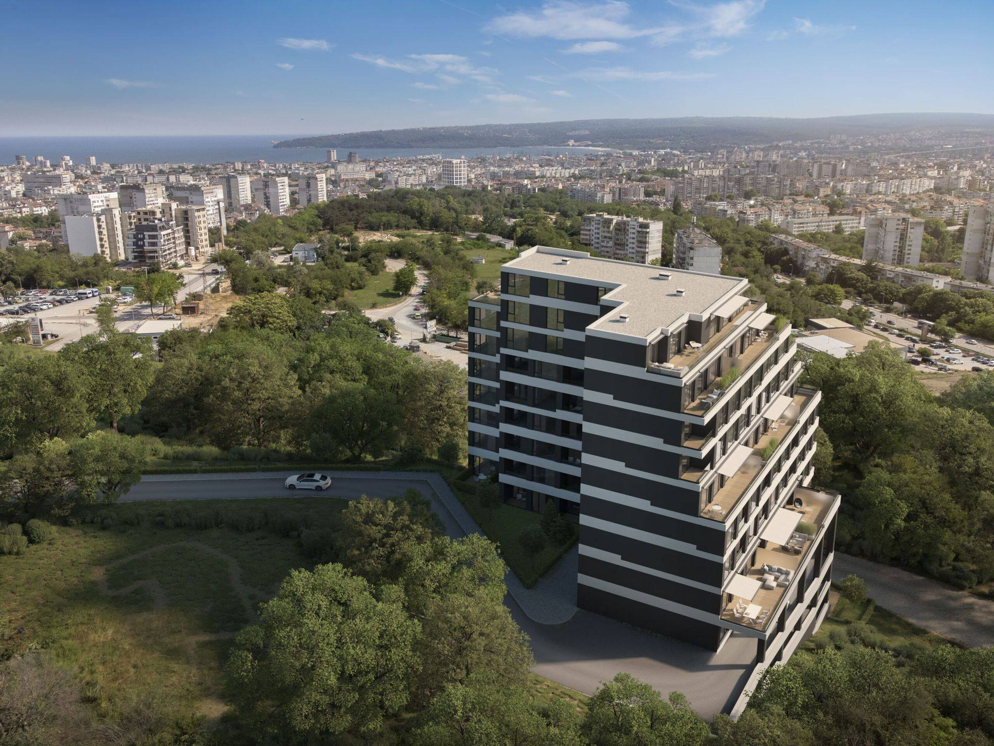 Комплекс Gledka расположен в районе Пчелина — одном из самых перспективных и высоких районов Варны. Расположение обеспечивает уникальные панорамные виды на город и Варненский залив. Район отличается низкой плотностью застройки, отсутствием визуального шума и развитой инфраструктурой. До моря можно добраться за короткое время, а транспортная доступность позволяет легко перемещаться по городу. Пчелина активно развивается, что повышает привлекательность района для жизни и инвестиций.