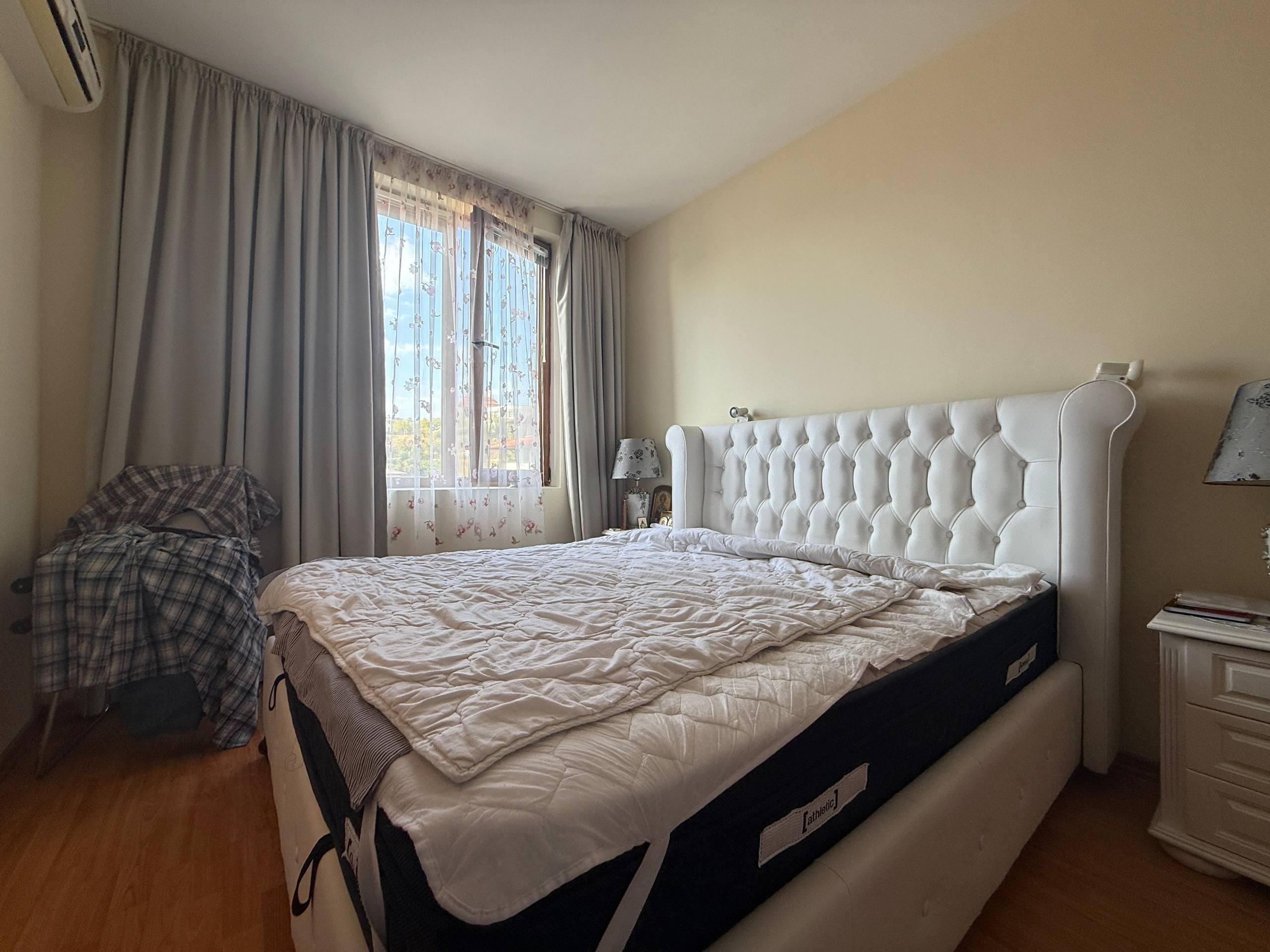 Квартира площадью 100 м² расположена на одном из этажей комплекса и обладает продуманной планировкой. В неё входят просторная гостиная с кухонной зоной, две отдельные спальни, каждая из которых имеет достаточный метраж для комфортного проживания, а также санузел. Наличие террасы позволяет наслаждаться видом и атмосферой первой линии у моря. Такой формат квартиры подходит как для постоянного проживания, так и для семейного отдыха или сдачи в аренду, что особенно актуально для покупателей, заинтересованных в инвестициях в недвижимость в Болгарии.
