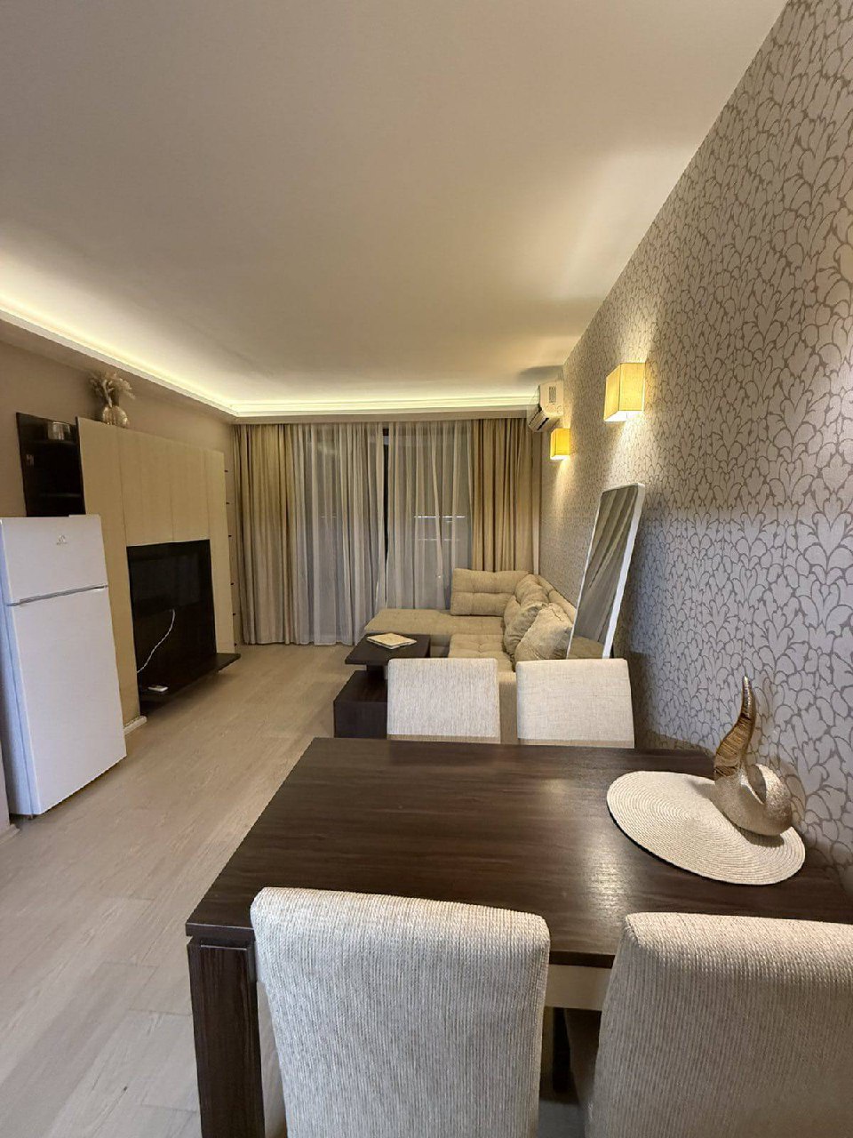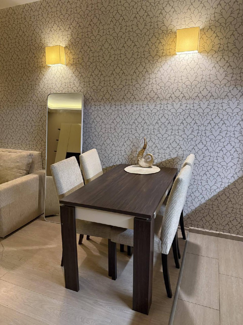 Квартира площадью 63 квадратных метра находится на втором этаже комплекса Harmony Suites 2. Планировка включает просторную кухню-гостиную и отдельную спальню, что делает её полноценной двухкомнатной квартирой, а не студией. Такое распределение пространства удобно для жизни, приёма гостей и длительного проживания. Окна выходят на бассейн, создавая приятную атмосферу и повышая привлекательность объекта для арендаторов. Квартира полностью меблирована и оснащена современной техникой, включая духовой шкаф и посудомоечную машину, что позволяет сразу заселиться или начать сдавать её в аренду без дополнительных вложений.