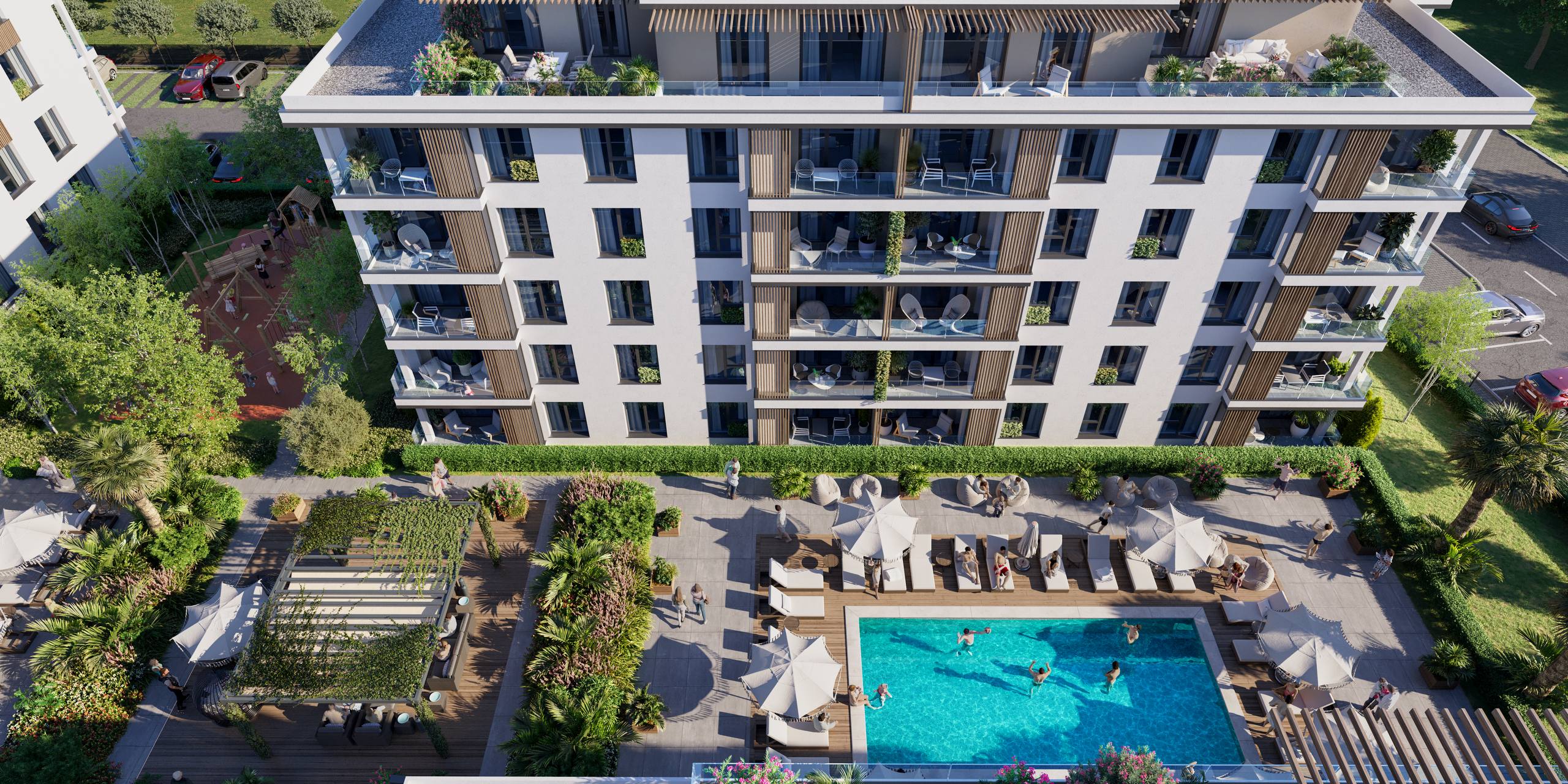 Комплекс расположен в Несебре, всего в 700 метрах от моря и примерно в километре от исторического Старого города. Такое расположение обеспечивает удобный доступ к пляжам, культурным и развлекательным объектам, а также к крупнейшему в Болгарии аквапарку, который находится всего в 400 метрах от комплекса. Район отличается гармоничным сочетанием курортной инфраструктуры и спокойной жилой среды с зелёными зонами. Хорошо развитая транспортная сеть и близость ключевых объектов делают покупку квартиры в Несебре выгодным решением для жизни и отдыха.