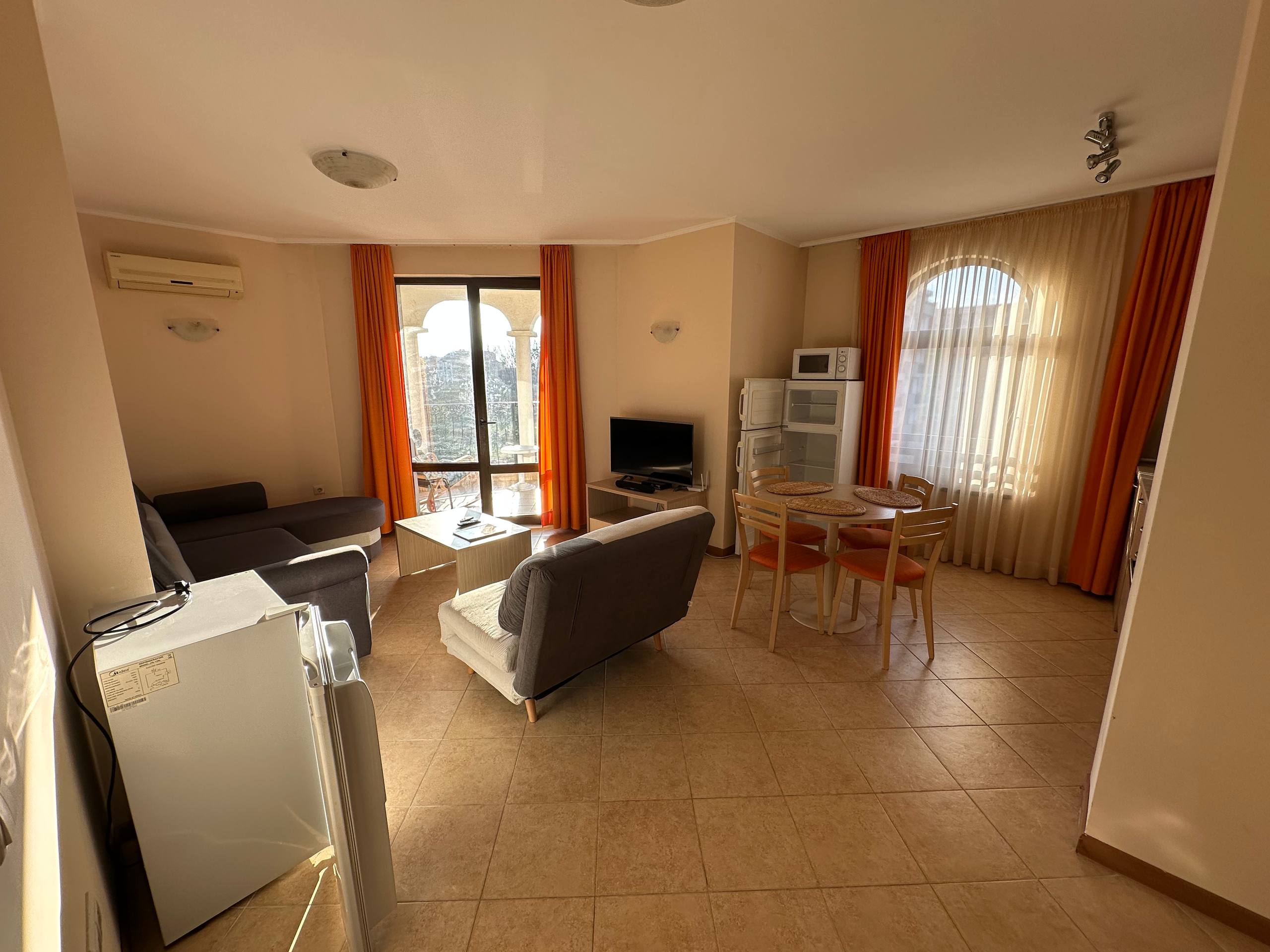 Предлагается к продаже трёхкомнатная квартира с двумя спальнями в комплексе Royal Sun, расположенном в популярном курортном городе Солнечный Берег. Этот объект отлично подходит для комфортного проживания у моря, семейного отдыха и выгодной аренды. Квартира в Солнечном Береге в комплексе Royal Sun станет удачным выбором для тех, кто ищет недвижимость в Болгарии с проверенной репутацией и развитой инфраструктурой.