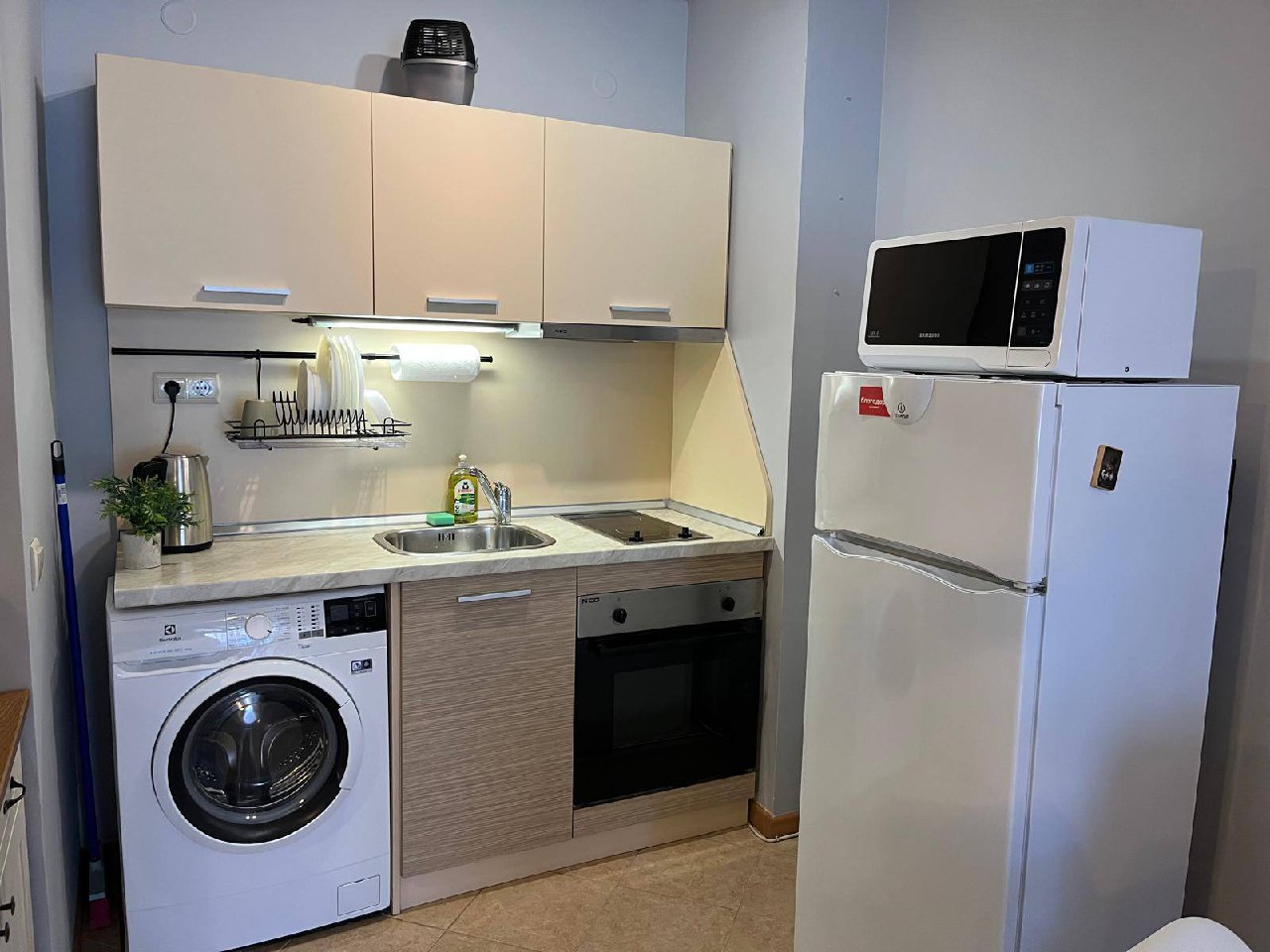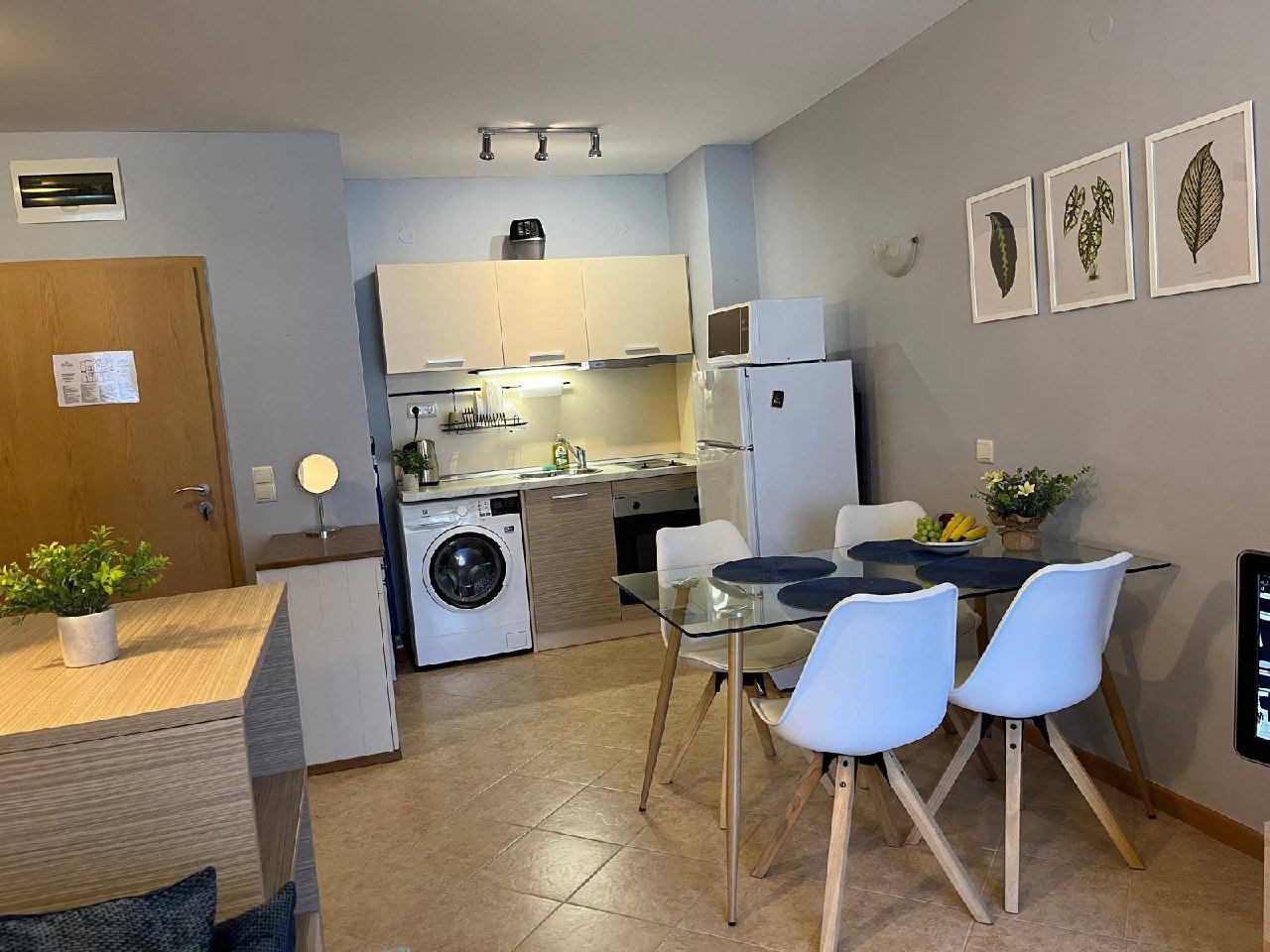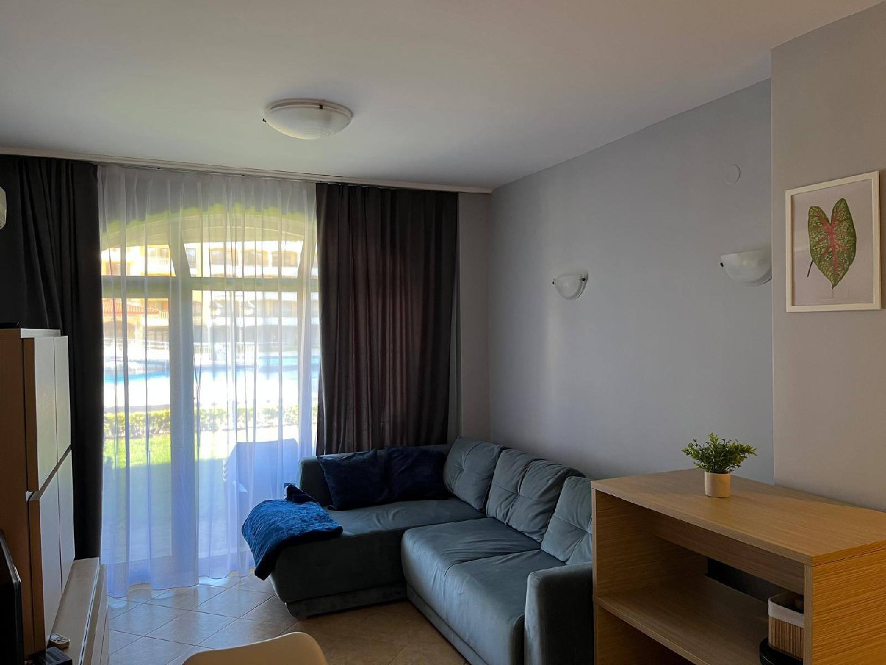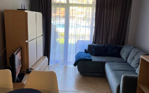 Квартира находится на партерном этаже, что обеспечивает удобный и быстрый доступ без необходимости пользоваться лифтами или лестницами. Общая площадь объекта составляет 49 квадратных метров. Планировка включает гостиную с кухонной зоной и отдельную спальню, что делает квартиру универсальной для проживания или сдачи в аренду. Такой формат недвижимости в Солнечном Береге стабильно пользуется спросом как у покупателей, так и у арендаторов.