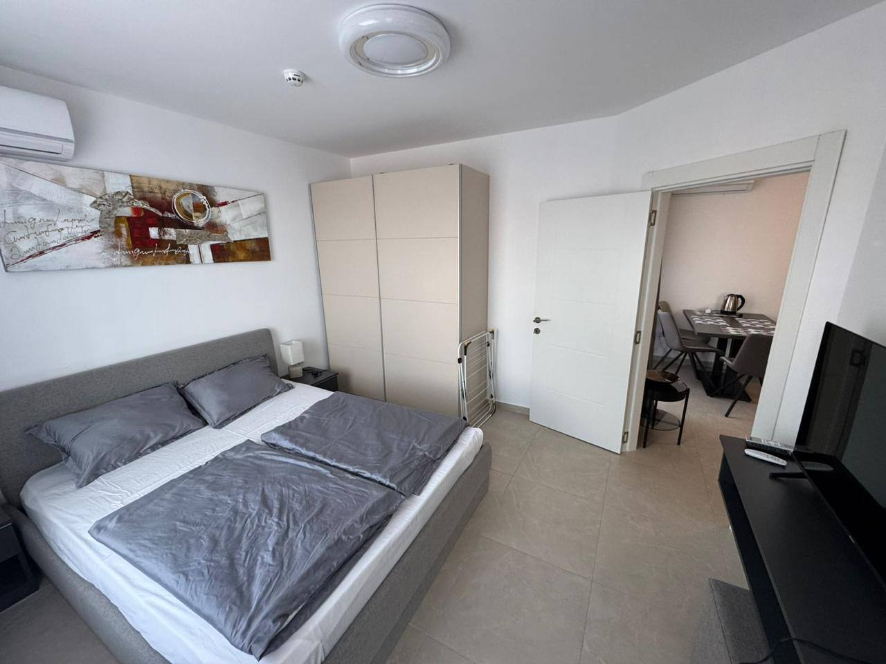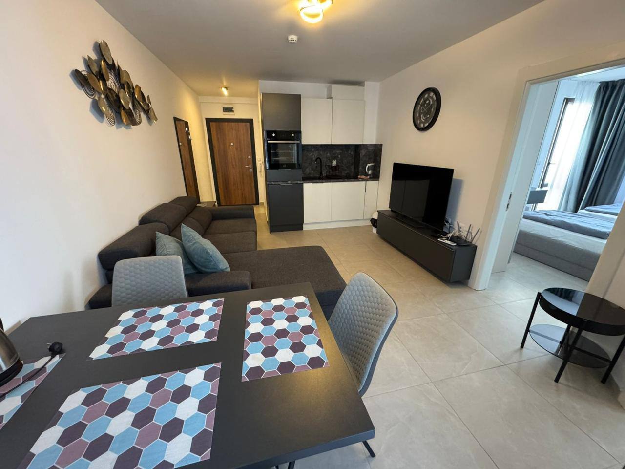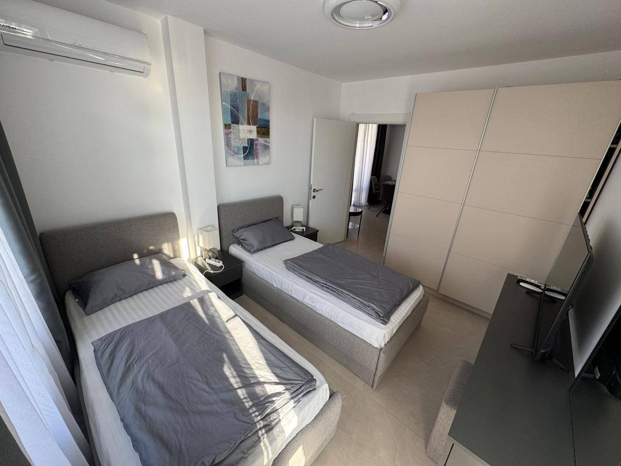 Квартира формата 2+1 включает гостиную с кухонной зоной и две отдельные спальни. Общая площадь составляет 73,32 м². Планировка продумана до мелочей, без лишних коридоров, что обеспечивает рациональное использование пространства. Апартамент находится на 4 этаже, что гарантирует хороший обзор и приватность. Из детской спальни открывается вид на море — редкая особенность, повышающая ценность квартиры. Важным преимуществом является наличие тёплых полов, что делает жильё комфортным для проживания в межсезонье и зимой.