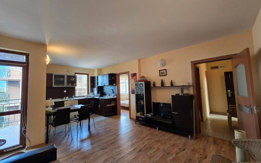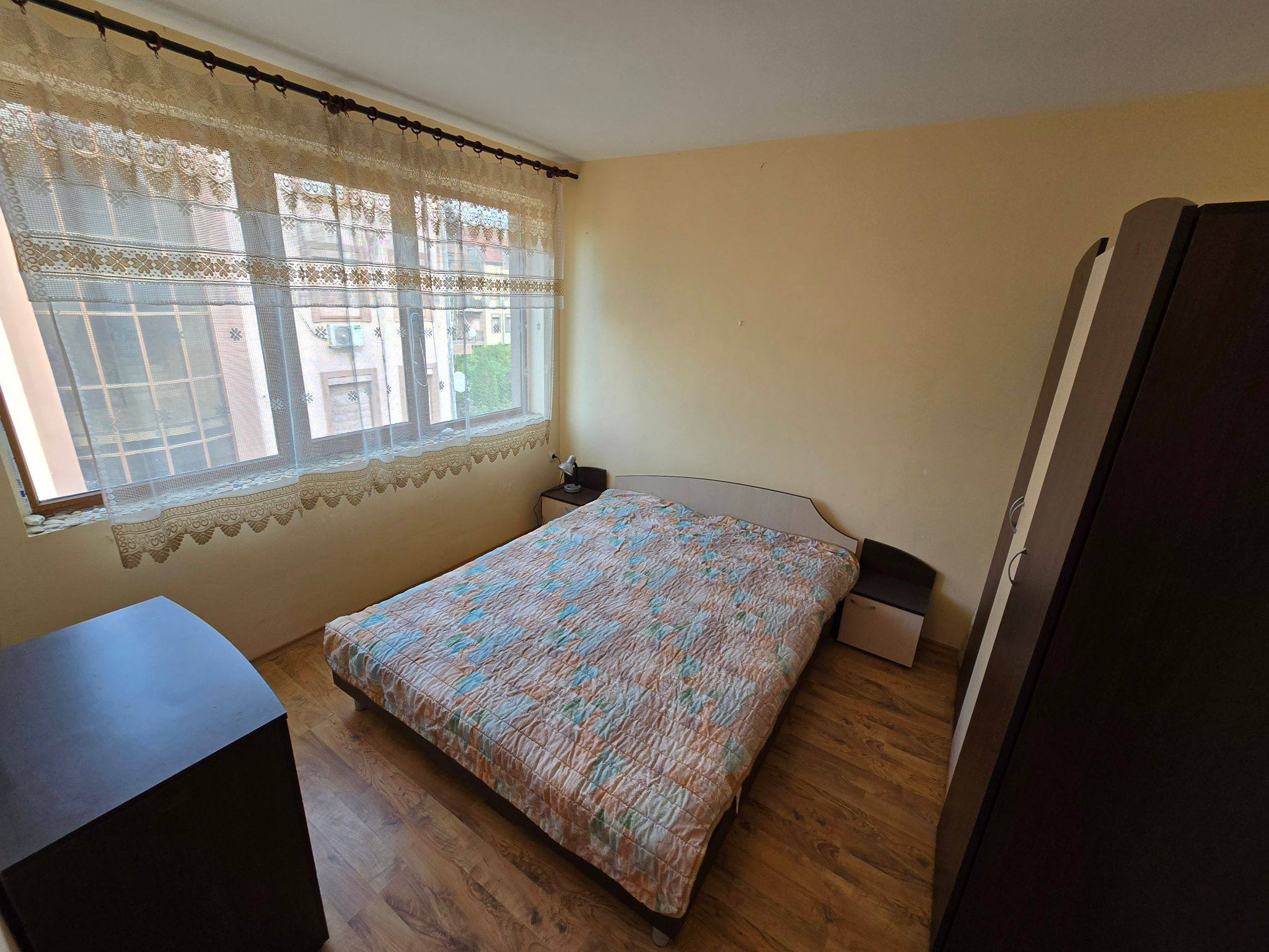 Квартира имеет классическую двухкомнатную планировку, включающую гостиную с кухонной зоной и отдельную спальню. Общая площадь составляет 59 квадратных метров, что обеспечивает комфортное пространство без ощущения тесноты. Расположена квартира на втором этаже, что считается оптимальным вариантом как для постоянного проживания, так и для аренды. Такой формат недвижимости в Болгарии остаётся востребованным благодаря своей универсальности и удобству.