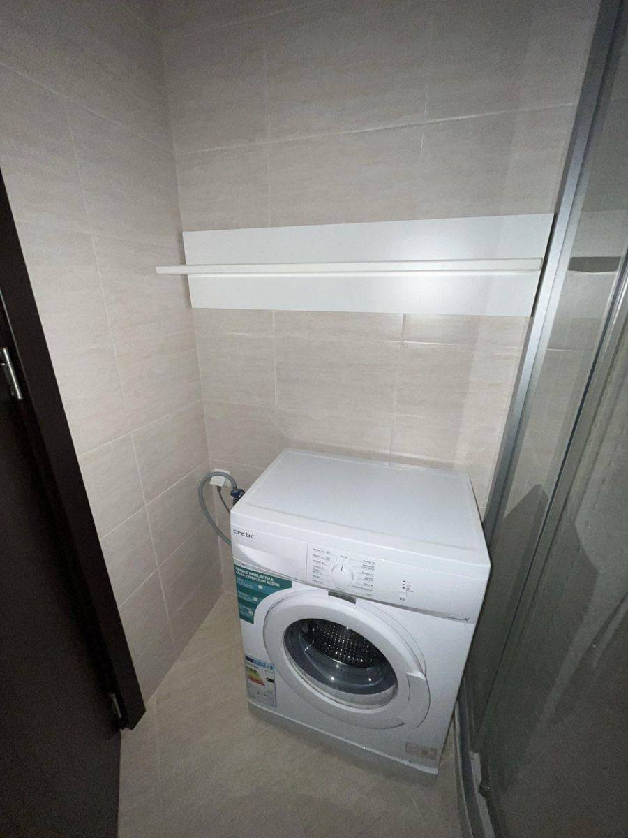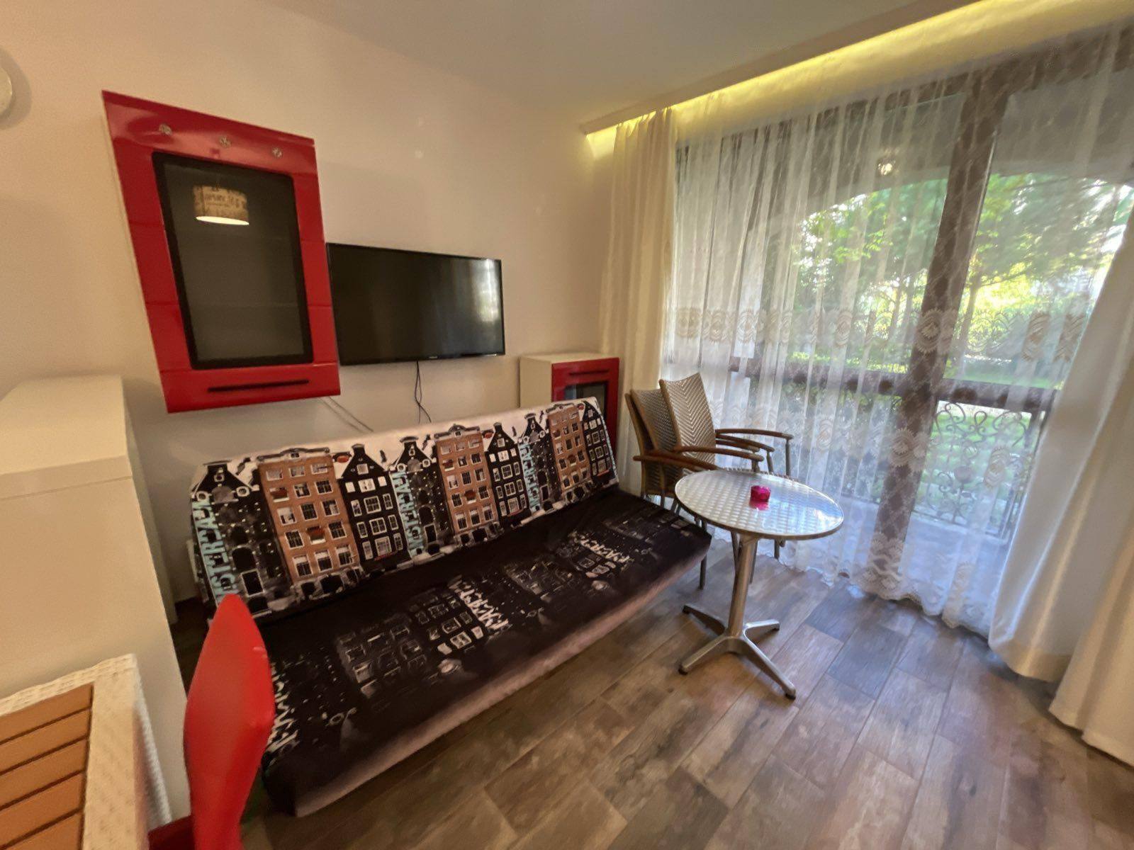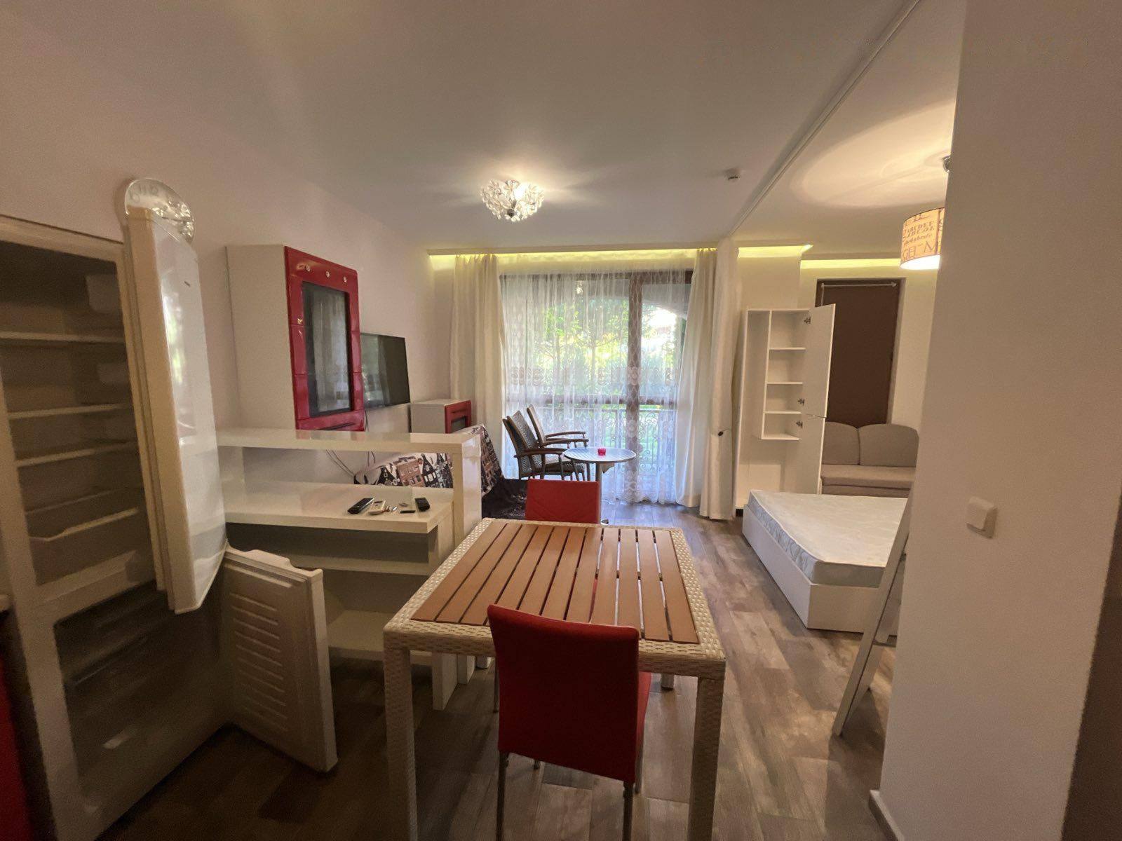 Апартамент находится на партерном этаже, что обеспечивает удобный доступ без необходимости пользоваться лифтами или лестницами. Общая площадь квартиры составляет 45 квадратных метров, что значительно превышает средний размер студии и создаёт ощущение простора. Планировка выполнена в открытом формате, объединяющем жилую зону, кухню и обеденную часть. Благодаря этому квартира не кажется тесной и легко поддаётся зонированию. Апартамент продаётся полностью меблированным, что позволяет сразу начать использовать его для жизни или сдачи в аренду без дополнительных вложений.