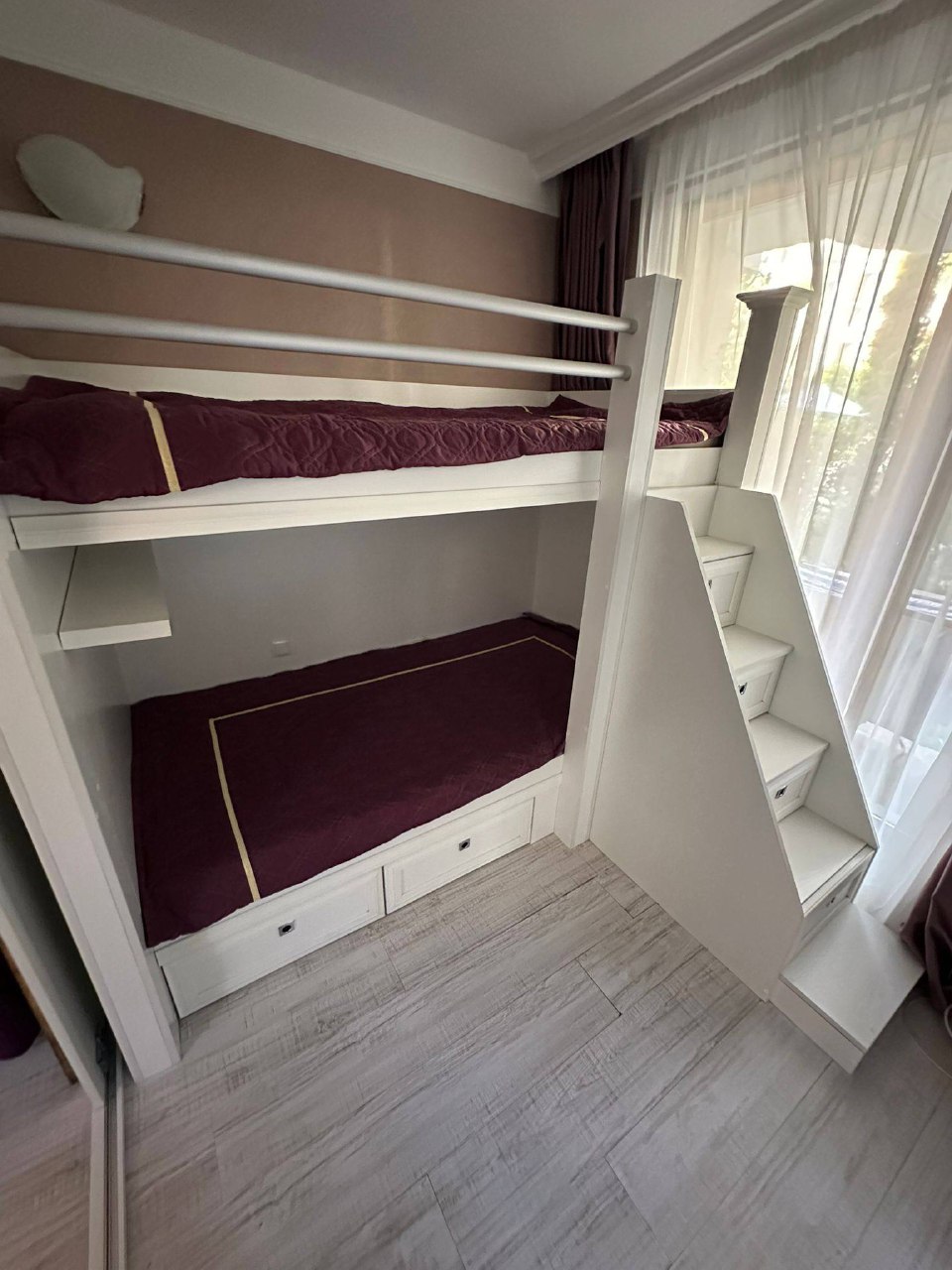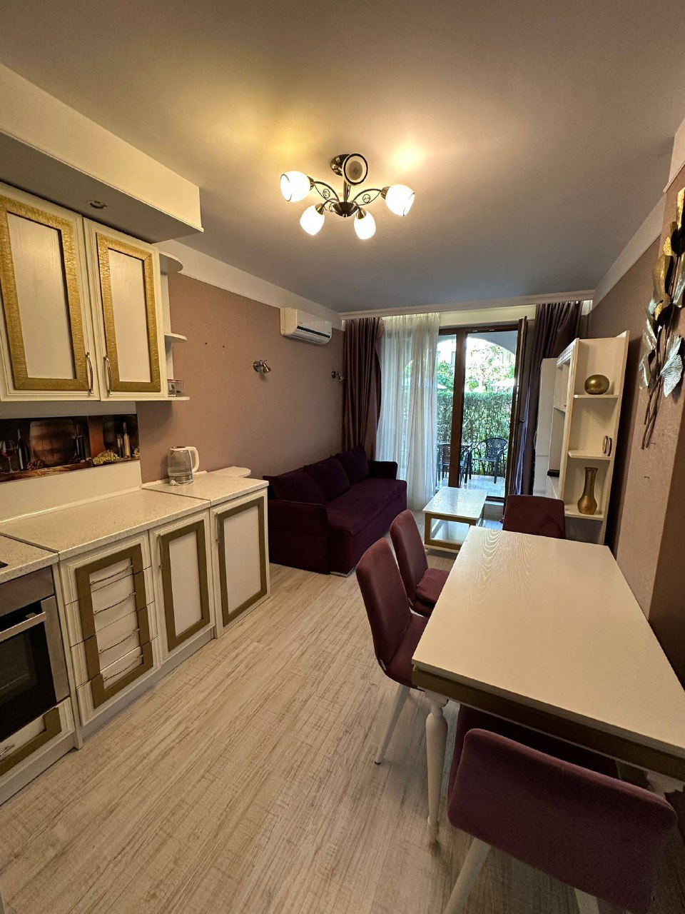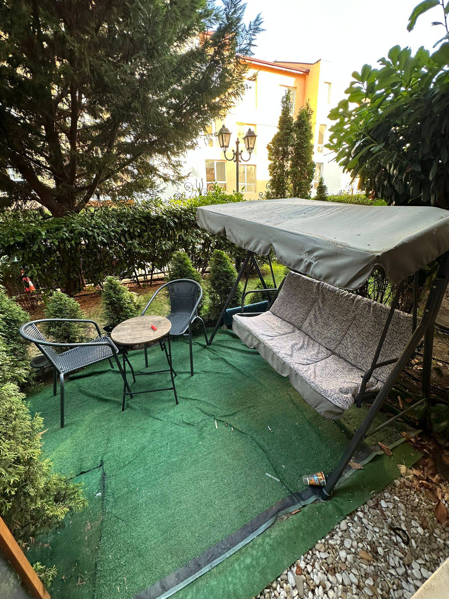 Квартира находится на первом этаже комплекса и имеет общую площадь 64 квадратных метра. Планировка включает просторную гостиную с кухонной зоной и отдельную спальню. Особенностью данного объекта является наличие собственного дворика, что обеспечивает дополнительное пространство и приватность. Такой формат жилья отлично подходит для комфортного проживания, отдыха с семьёй или аренды. Партер в Harmony Monte Carlo — это полноценный жилой уровень с выходом в зелёную зону, а не тёмный цокольный этаж.