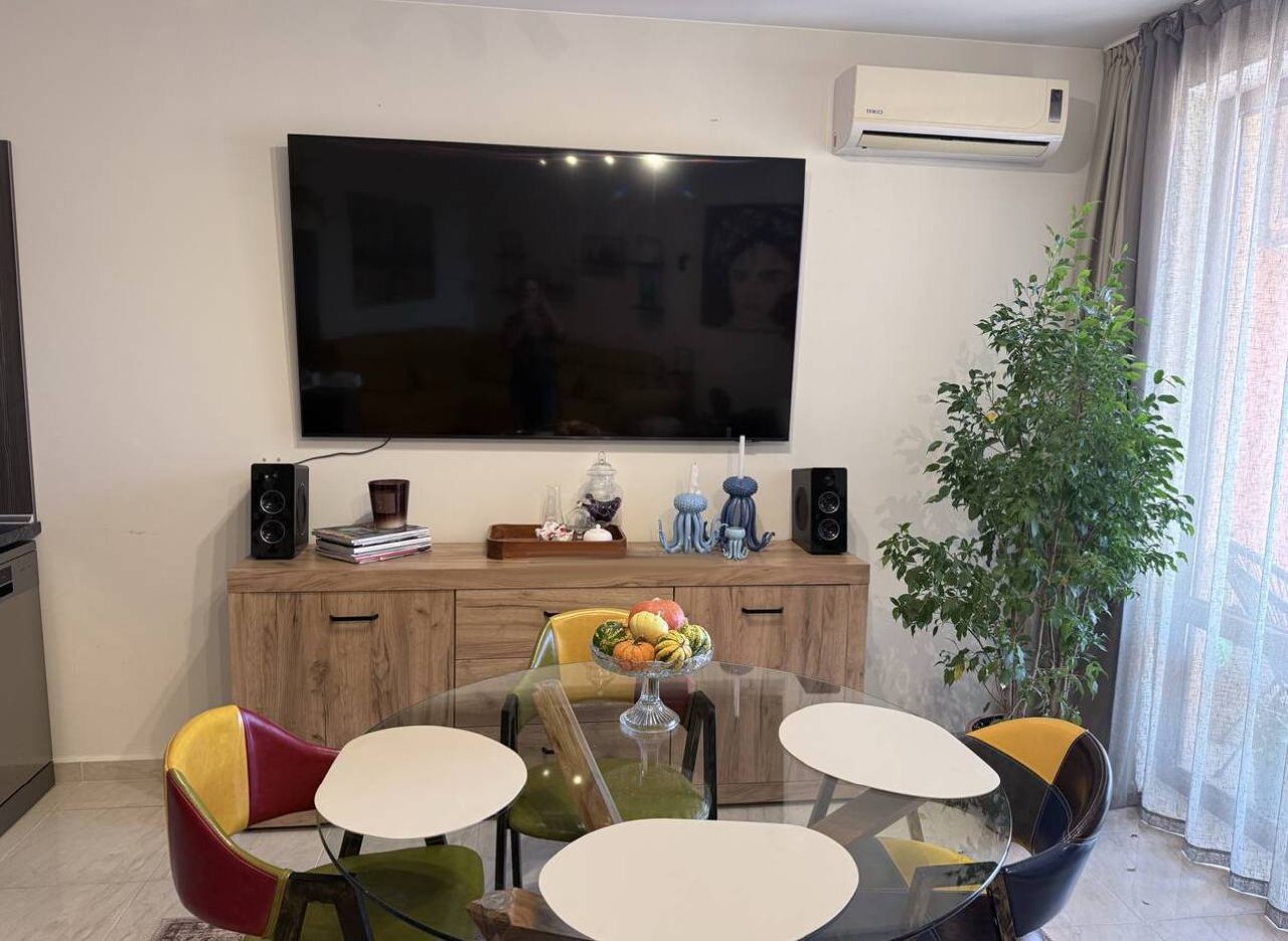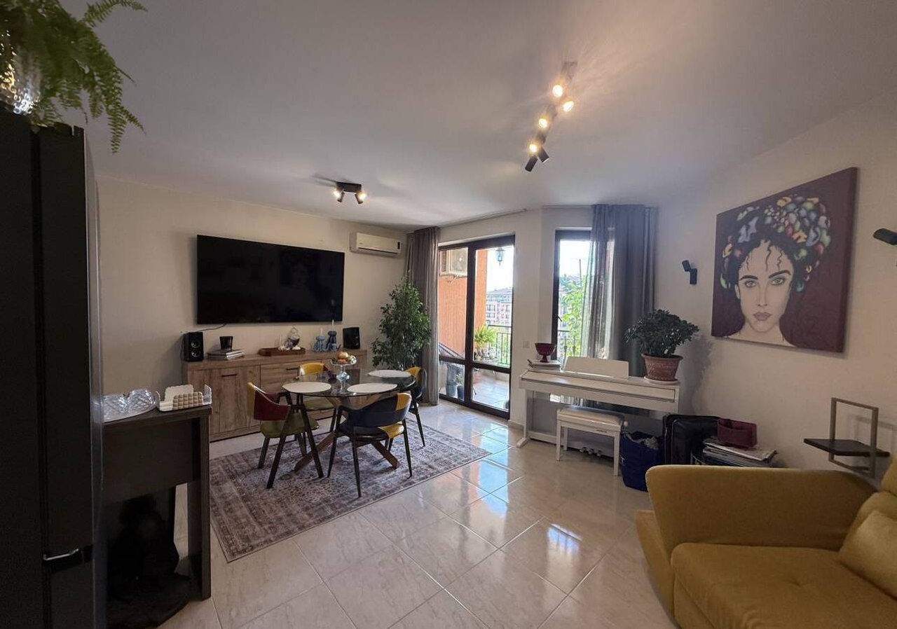 Квартира находится на третьем этаже и имеет классическую планировку с общей площадью 67 м². В состав входят просторная кухня-гостиная и отдельная спальня, что соответствует формату «1+1» — одному из самых востребованных вариантов на побережье. Южная ориентация обеспечивает хорошее естественное освещение и тепло в течение всего дня. Жильё полностью готово к заселению: выполнен современный ремонт, установлена новая мебель и бытовая техника. Такой формат квартиры в Святом Власе отлично подходит для жизни или сдачи в аренду.