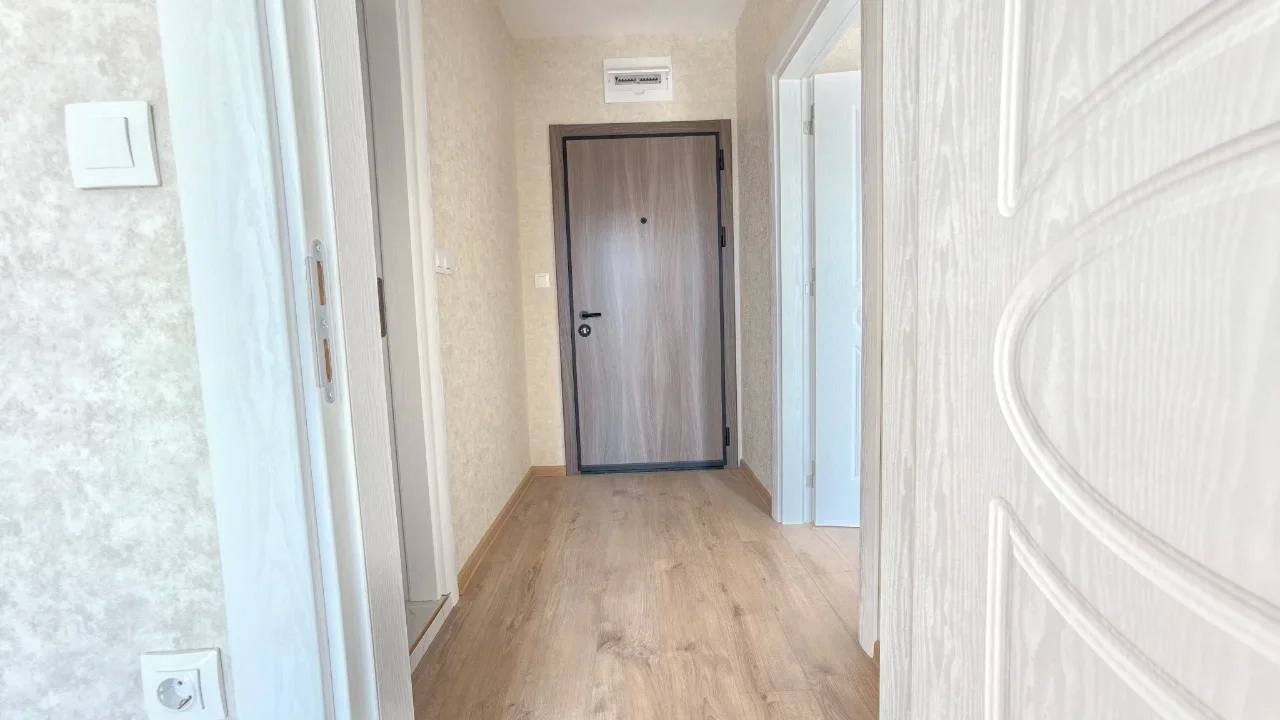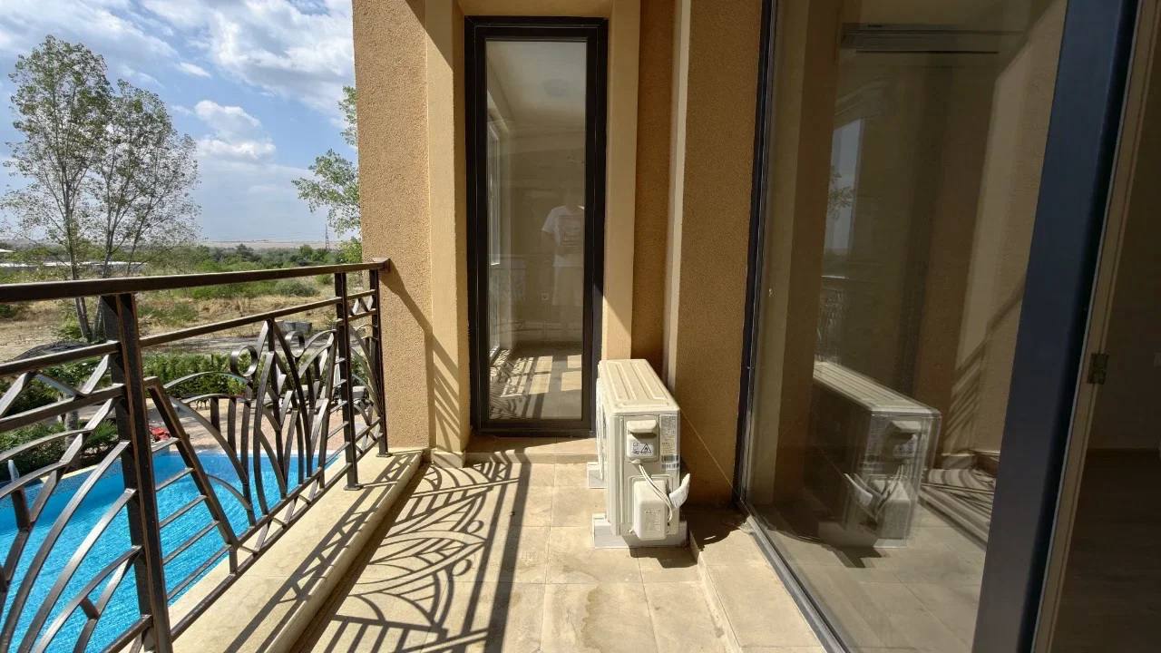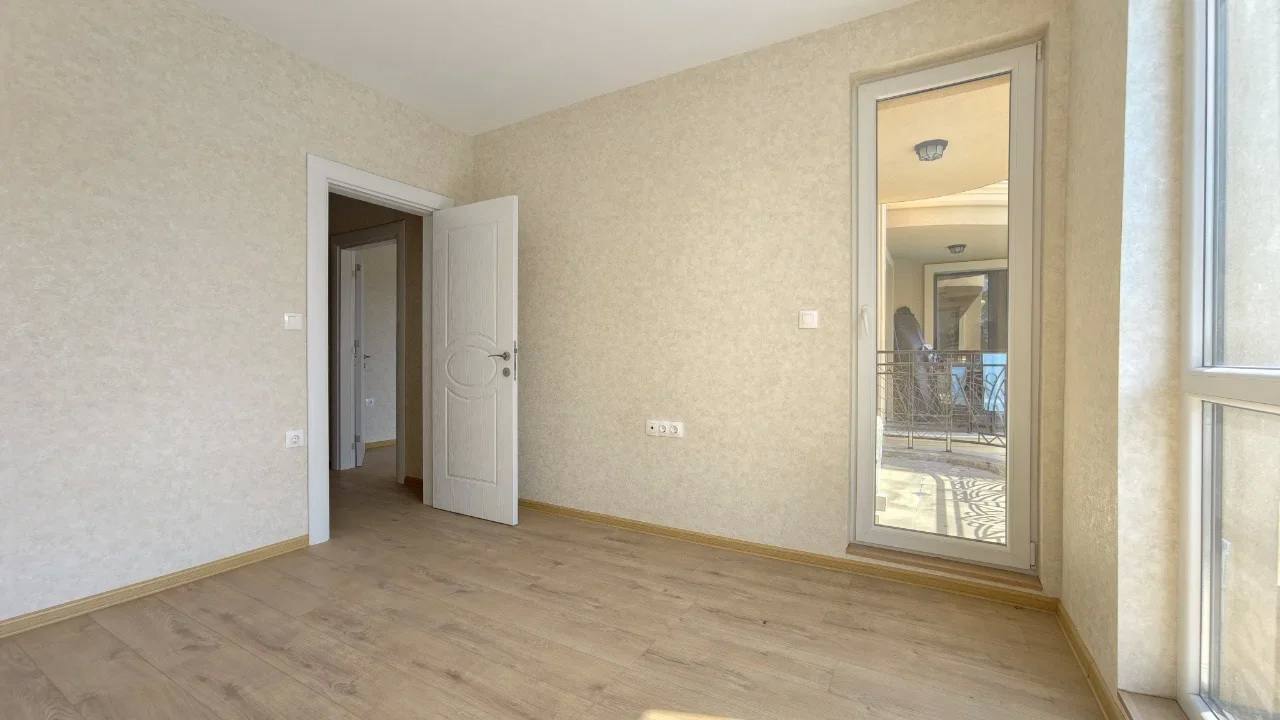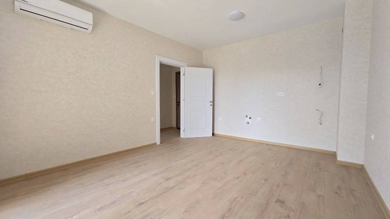Квартира площадью 52 м² расположена на третьем этаже нового здания, построенного в 2024 году. Планировка включает гостиную с кухонной зоной, отдельную спальню, коридор, санузел и балкон. Такой формат «гостиная + спальня» является наиболее востребованным среди покупателей недвижимости в Болгарии, так как обеспечивает комфорт как для постоянного проживания, так и для сдачи в аренду. Из окон открывается вид на бассейн комплекса, что повышает ликвидность квартиры и привлекательность для арендаторов. Апартамент продаётся без мебели, что даёт возможность оформить интерьер по собственному вкусу.