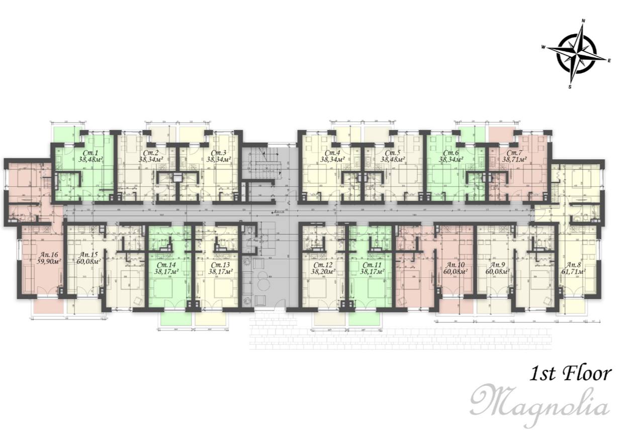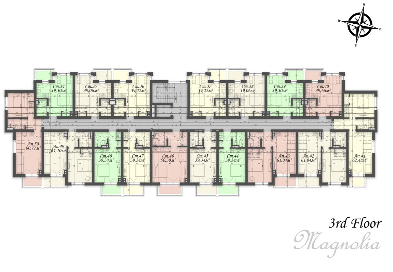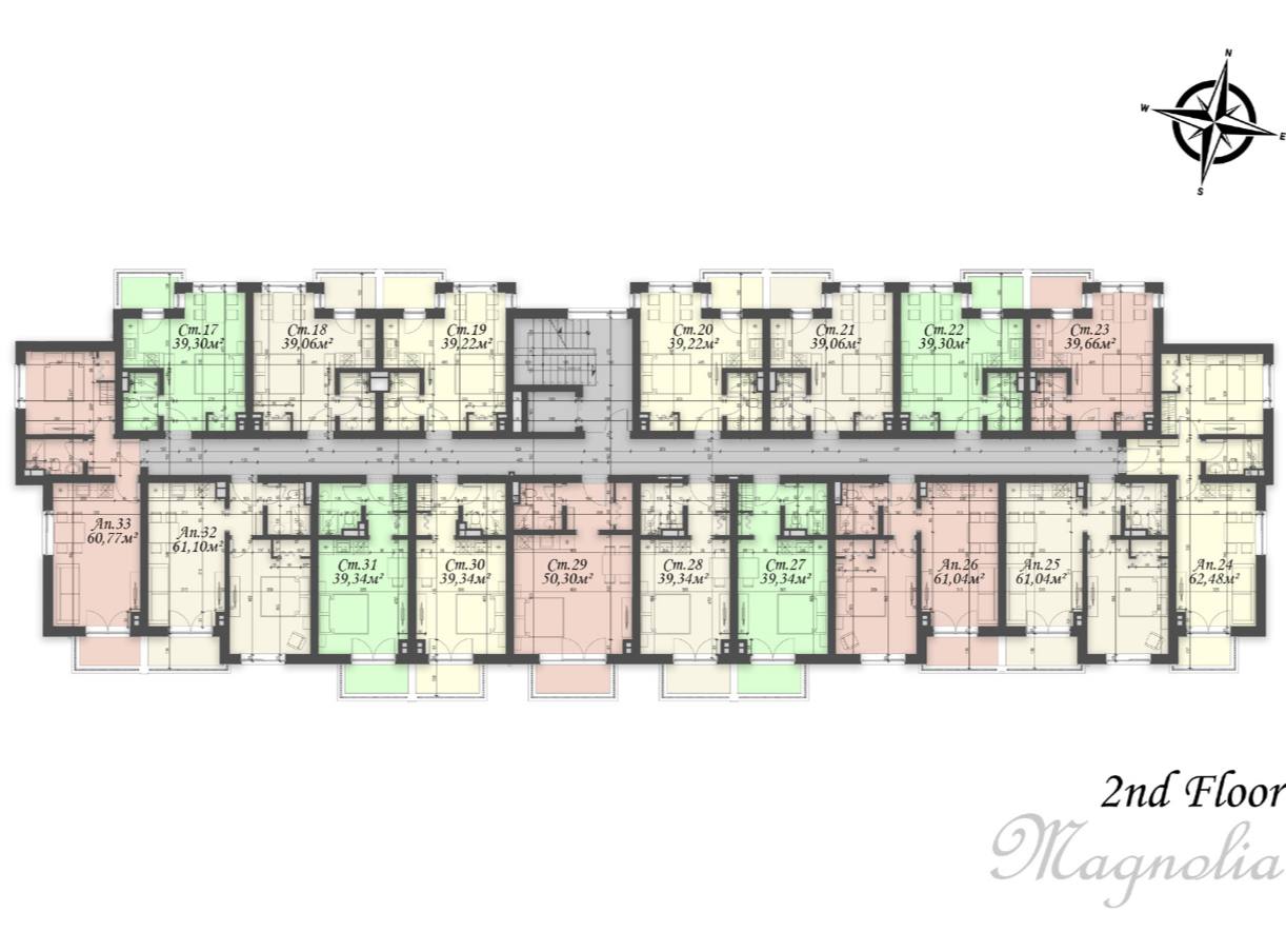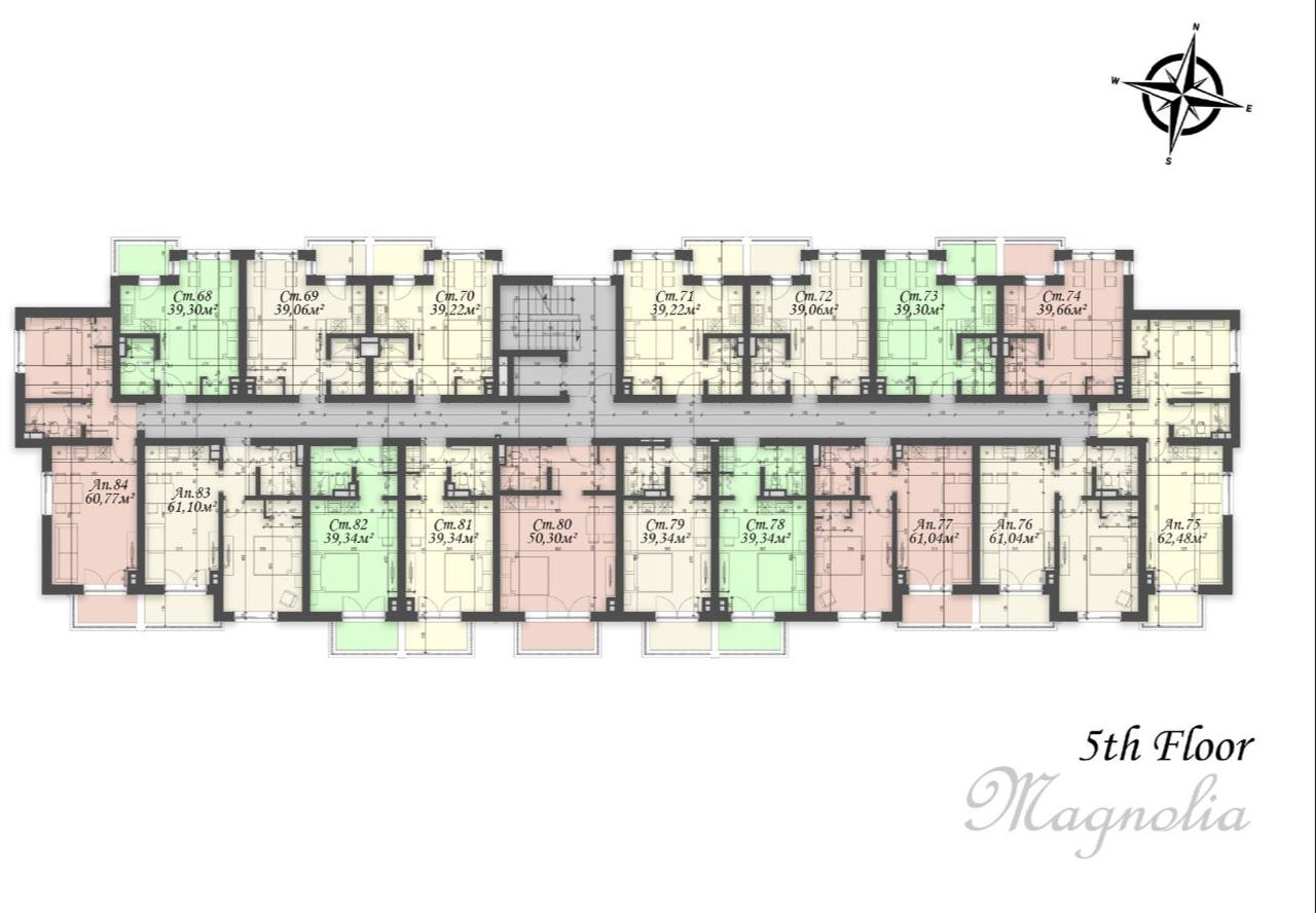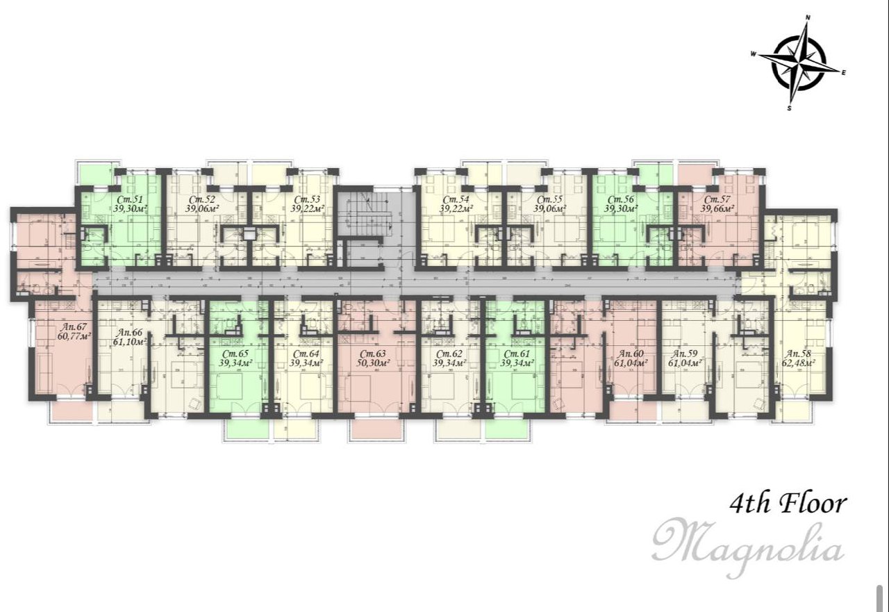 В комплексе Magnolia 8 представлены квартиры различных форматов: от компактных студий до просторных однокомнатных и двухкомнатных апартаментов площадью от 30 до 90 квадратных метров. Жильё расположено на разных этажах здания и оснащено балконами с панорамными окнами, что обеспечивает хорошее естественное освещение и комфорт. Планировки разработаны с учётом максимального функционального использования пространства. Квартиры передаются с чистовой отделкой, что позволяет сразу начать обустройство или сдачу в аренду без дополнительных затрат на ремонт.