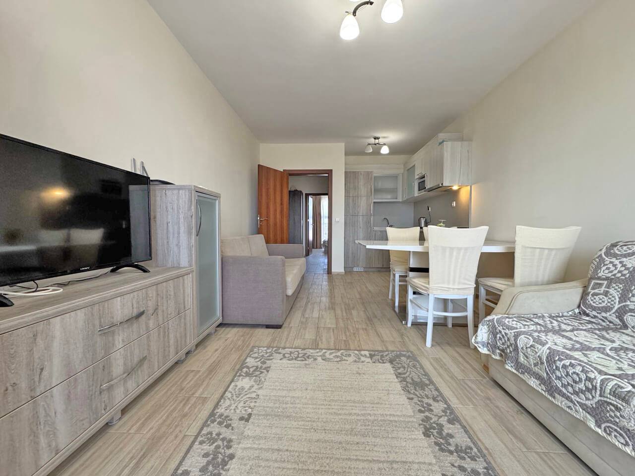 Комплекс расположен в Солнечном Береге, в 10–12 минутах ходьбы от пляжа. Район отличается спокойной атмосферой и развитой инфраструктурой, что делает его удобным для жизни и отдыха. Вблизи находятся магазины, рестораны, транспортные остановки и другие необходимые объекты. Солнечный Берег — один из самых востребованных курортов Болгарии, что обеспечивает высокую ликвидность недвижимости в этом районе.