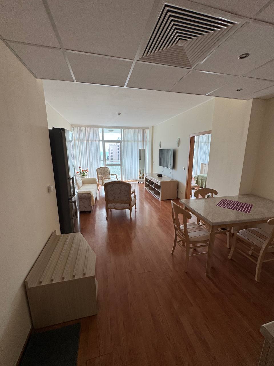 Предлагается к продаже просторная двухкомнатная квартира в комплексе Nirvana, расположенном в спокойной части популярного курорта Солнечный Берег. Этот объект недвижимости в Болгарии идеально подходит для тех, кто ищет комфортное жильё у моря для жизни или аренды. Квартира сочетает удобное расположение, качественную планировку и развитую инфраструктуру комплекса.
