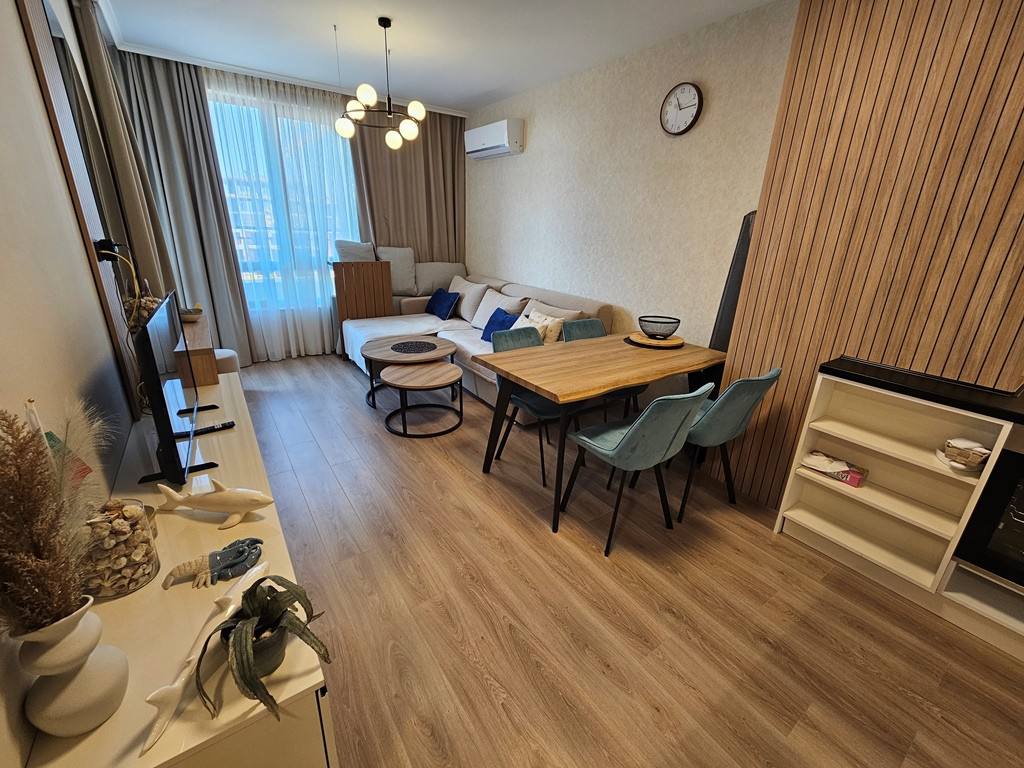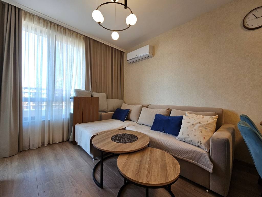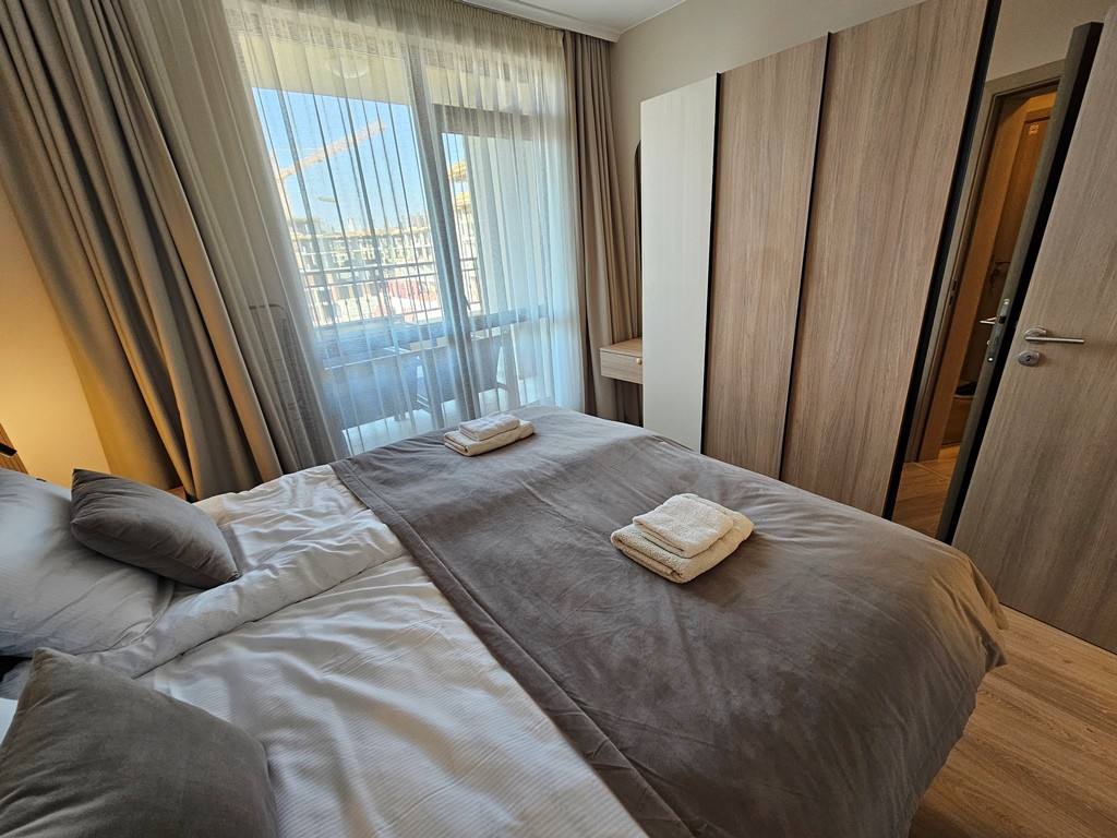 Предлагается к продаже современная двухкомнатная квартира в комплексе Sorrento Sole Mare, расположенном в престижном районе курорта Святой Влас. Этот объект недвижимости в Болгарии идеально подходит для тех, кто ищет квартиру для жизни или аренды у моря в спокойной и живописной местности с видом на побережье.